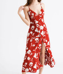 Savi、王菊同款!Petite Studio 红色印花吊带裙