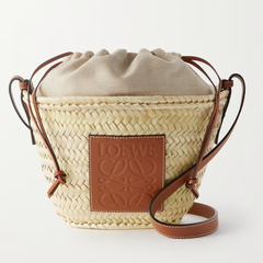 法国站降价!LOEWE x Paula's Ibiza 皮革边饰拉菲草水桶包