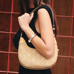Tory burch T MONOGRAM 老花半月包 天然色