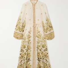 已过期 Zimmermann 2024夏季新款 GOLDEN 亚麻系扣前襟灯笼袖中长款连衣裙 HK$6942(约6216元)