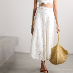 古力娜扎同款!ZIMMERMANN Ottie 纯棉凸花蕾丝中长半身裙