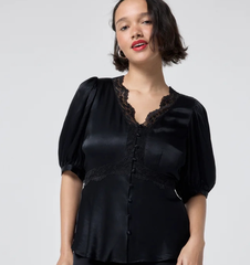 Scamp & Dude 黑色蕾丝饰泡泡袖纽扣衬衫