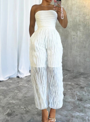 LW 露肩华夫格针织连身裤