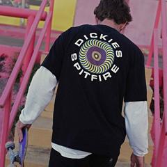 Dickies是美国比较为著名的工装裤品牌,自1922年成立以来,一直担当美国蓝领工人的典型代表行头的服饰,其产品都代表着品质、耐穿,以及象征着美国工人精神的自豪。随着时代的发展,Dickies顺应潮流地推出多种面向年轻人的产品,在欧洲的滑板、越野自行车和创意圈内占得一席之地,已经成为了街头潮流文化不可缺少的一部分。