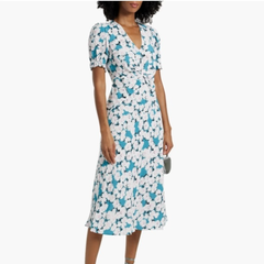 DVF Anaba 扭纹花卉印花双绉中长连衣裙