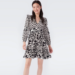 DVF Kourtney 黑白V领连衣裙