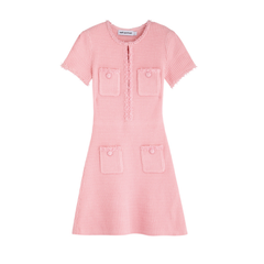 SELF-PORTRAIT 珍珠镶边华夫格连衣裙