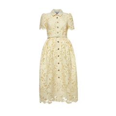 SELF PORTRAIT 黄色花卉蕾丝中长连衣裙