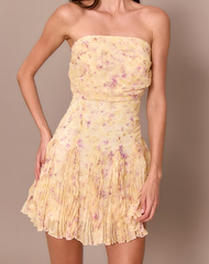 PrettyLittleThing 淡黄色雪纺碎花鱼尾连衣裙