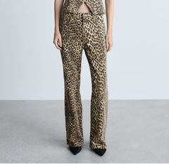 Mango 豹纹高腰裤