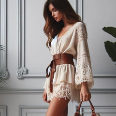 系腰带褶饰蕾丝短裤
