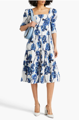DVF Nora 花卉印花马德拉刺绣棉质中长连衣裙