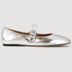 奚梦瑶同款 Sandro 银色芭蕾舞平底鞋