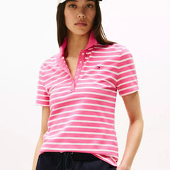 TOMMY HILFIGER 粉色条纹POLO衫