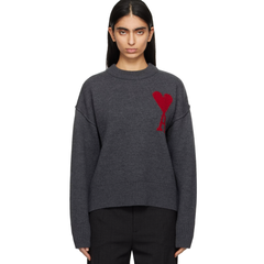 AMI 灰色红爱心圆领毛衣