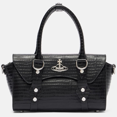 港站定价优势!VIVIENNE WESTWOOD 西太后 Bettina 黑色迷你鳄鱼皮托特包