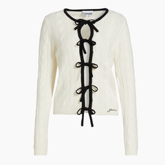 Ganni 白色蝴蝶结绞花开衫