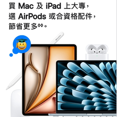 買 Mac 及 iPad 上大專,選 AirPods 或合資格配件,節省更多