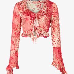 Roberto Cavalli 荷叶边美洲虎皮印花短款上衣