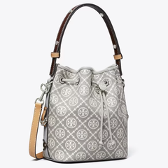 上新!Tory Burch 汤丽柏琦 T MONOGRAM 珍珠灰老花水桶包