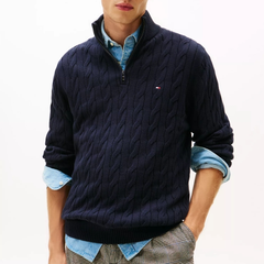 TOMMY HILFIGER 绞花针织高领拉链毛衣