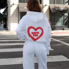 White Fox 爱心印花连帽卫衣
