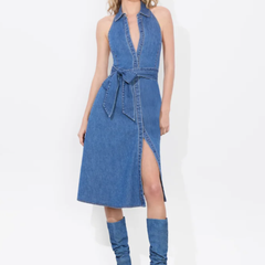 降价!Alice+Olivia CHASSIDY CHAMBRAY 挂脖牛仔连衣裙