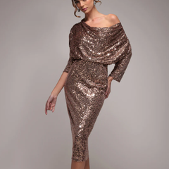 Goddiva 香槟色亮片中长连衣裙