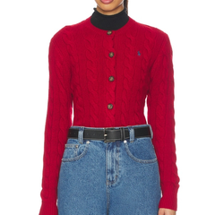 免税直邮!POLO RALPH LAUREN 拉夫劳伦红色绞花开衫
