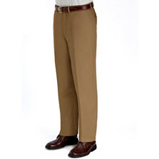 Wrinkle-Resistant Cotton Twill Plain Front Pants 男士防皱棉质长裤