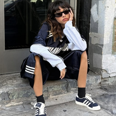 Adidas Originals 阿迪达斯三叶草印花条纹黑色外套