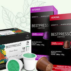 Bestpresso是一家位于纽约的咖啡品牌,提供种类繁多的产品,包括意式浓缩咖啡胶囊、k-pods 和 Nespresso 兼容咖啡包。Bestpresso只选择最好的咖啡豆,为您带来100%天然的意式浓缩咖啡。