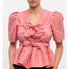 Ganni 法式泡泡袖 格纹上衣