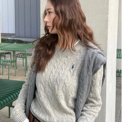 Polo Ralph Lauren 拉夫劳伦粉色粗织绞花毛衣