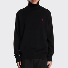 AMI PARIS 爱心徽标黑色高领毛衣
