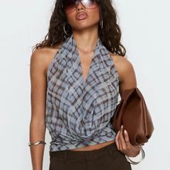 PRINCESS POLLY ALDANA 深V蓝色格纹上衣