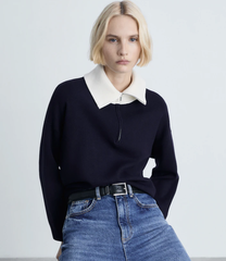 Mango 拼色翻领毛衣