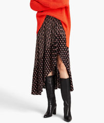 MAJE 不对称徽标印花薄纱中长裙