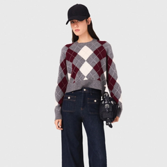 Maje 短款菱形花纹毛衣