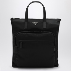 Prada 普拉达 Saffiano 黑色尼龙拼皮革双肩购物袋