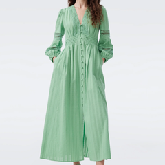 DVF Zina 海沫绿蕾丝多比棉长袖茶歇裙