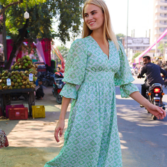 Aspiga:2026春夏美衣上新!有机棉蓝白印花连衣裙£150
