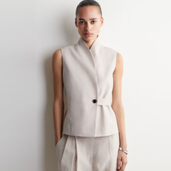 COS 披肩领系带亚麻背心