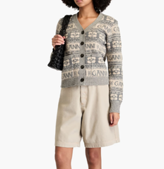 安宥真同款!Ganni 羊毛混纺提花针织开衫