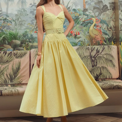 Mac Duggal 黄色无袖斜纹A字中长连衣裙