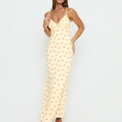 Princess Polly Morcar 荷叶边V领黄色花卉印花连衣裙