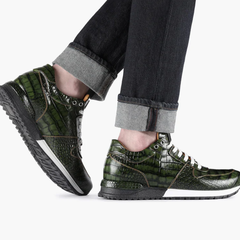 Armos 男士绿色鳄鱼纹压花皮革运动鞋