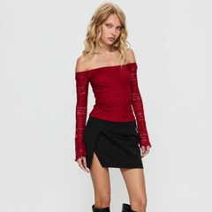 Princess Polly 红色蕾丝一字肩上衣