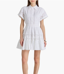 MAJE 蕾丝边饰马德拉刺绣棉质迷你衬衫式连衣裙