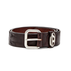 Diesel Logo 铭牌褶皱皮革腰带